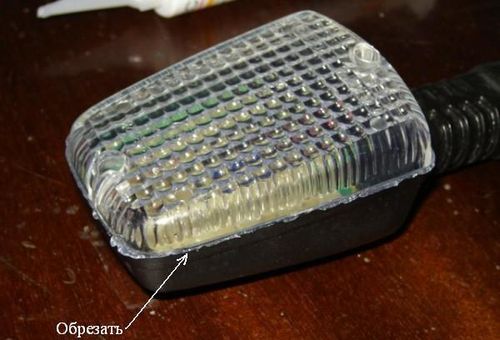 Само стекло посадил на прозрачный силиконовый герметик. Его выдавил в паз на корпусе фонаря, куда входит стекло, а так же в паз на красном стекле, в который вставляется белое. Когда герметик подсох, обрезал все, что вылезло наружу. К вопросу о возможной разборке, скажу, что силиконовый герметик практически не прилипает к пластмассе, и поэтому снять стекло и отчистить все от остатков герметика – дело довольно нехитрое.