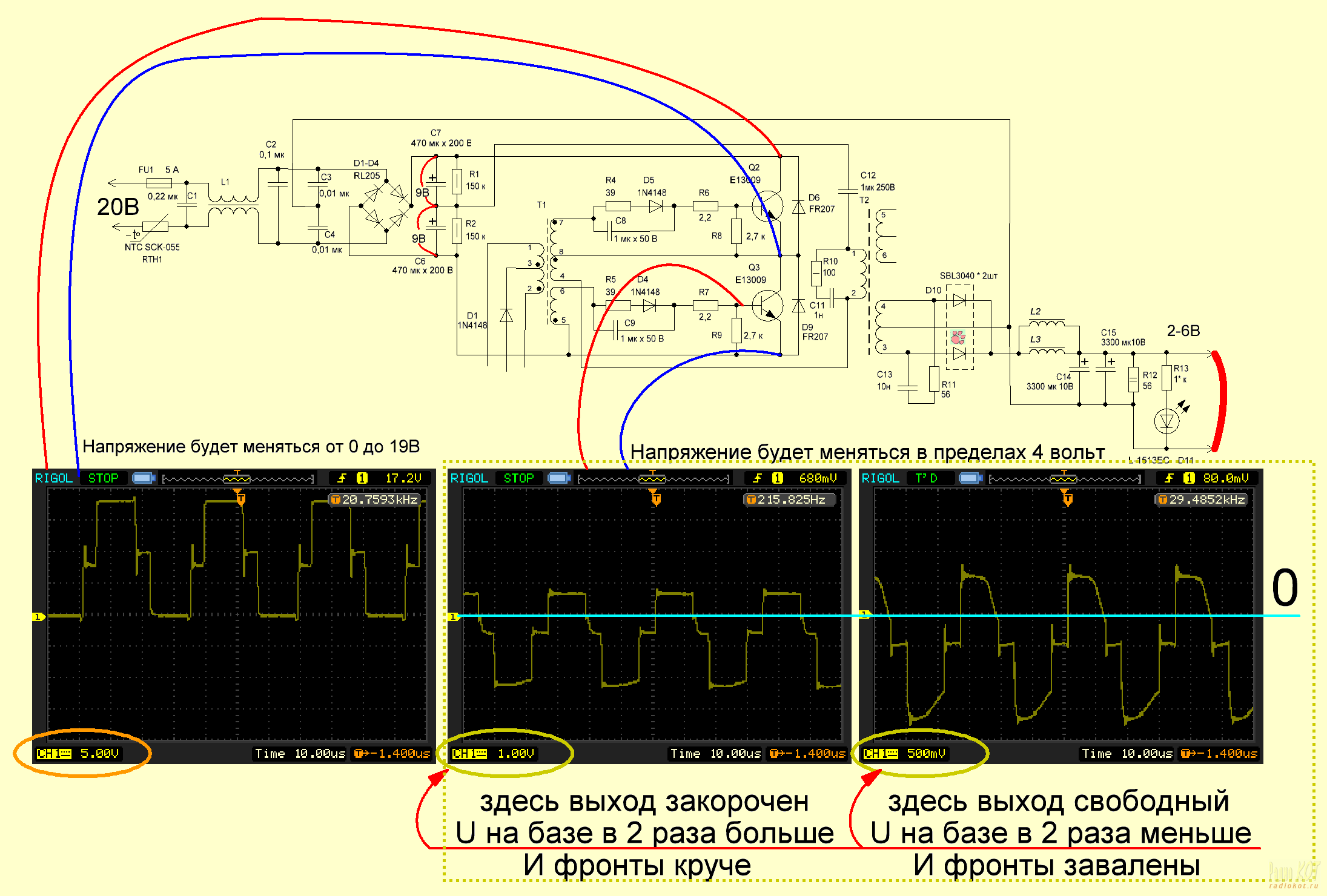 3. Рассмотрим силовую часть. Схема принципиальная. Настройка, таблица напряжений, формы сигналов.