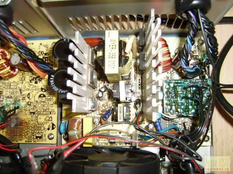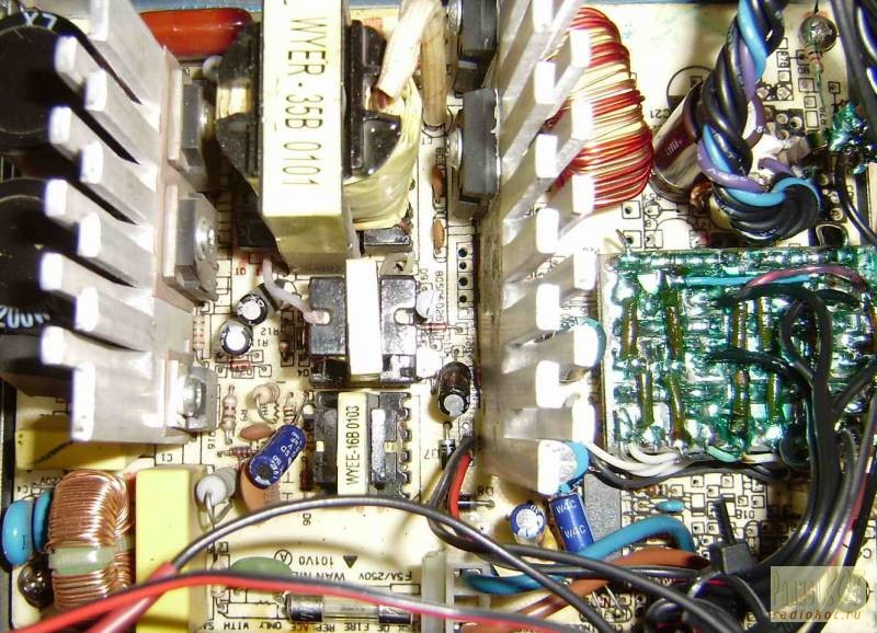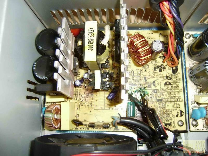 Компоновка платы распределителя в блоке С. Видны на фото также диоды SBL3040 в паре, а также родная рабочая дежурка, которая использовалась для питания +20в и для вентиляторов +12в.