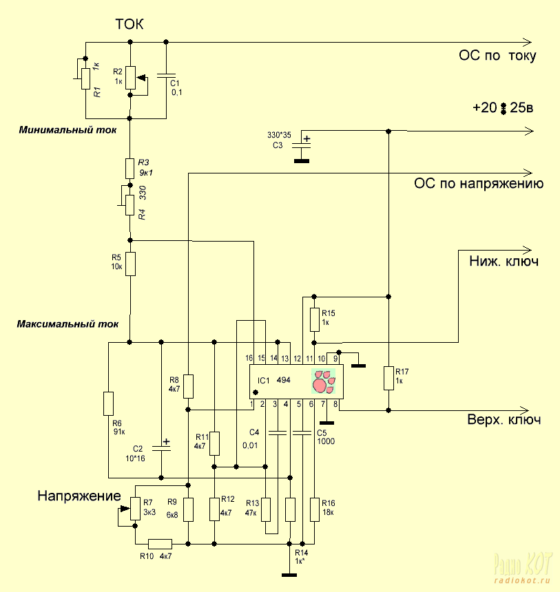 Рассмотрим блок ШИМ контроллера. Схема принципиальная. Настройка, таблица напряжений, формы сигналов.